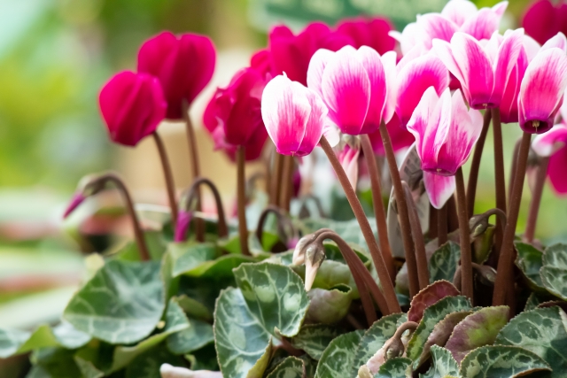 シクラメンはサクラソウ科シクラメン属多年草で、10~3月頃に見ごろを迎えます。