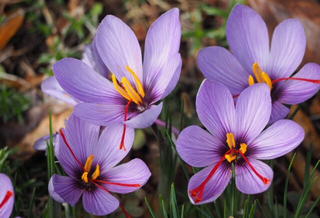 サフランはアヤメ科クロッカス属の多年草で、10月中旬~11月下旬頃に見ごろを迎えます。