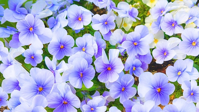 パンジーはスミレ科スミレ属の一年草で、10~5月頃に見ごろを迎えます。