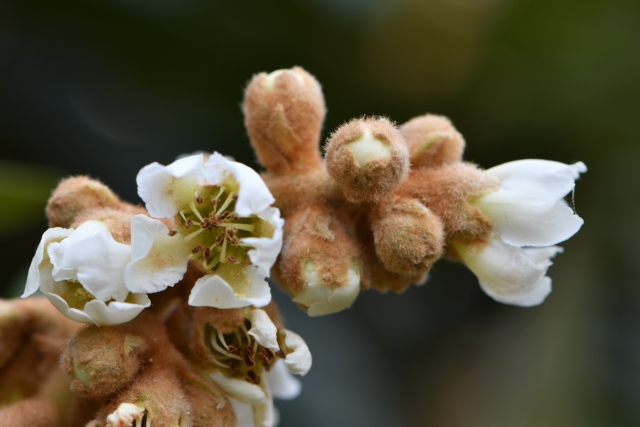 ビワの花は、酸味のある実とは打って変わり、バニラや杏仁豆腐のような甘い香りがします。