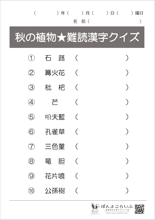 【脳トレプリント🎑解説付】秋の植物・難読漢字クイズ10問🌸読めたらすごい!季節を感じる脳トレに挑戦!